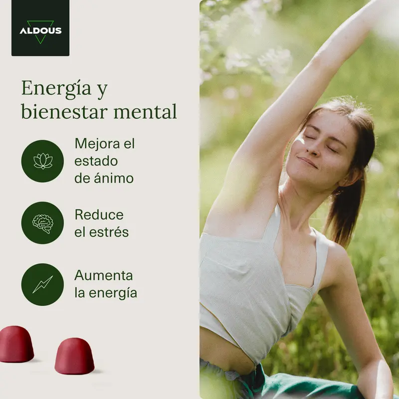 • ⭐ ASHWAGANDHA GOMINOLAS ENERGÍA Y BIENESTAR – Las gominolas Ashwagandha Aldous son el perfecto revitalizante para tener más energía, combatir el cansancio, mejorar el estado de ánimo, la memoria y la cognición. Ayudan a reducir la inflamación y, gracias a sus propiedades reducen la aparición de dolor y molestias. En la medicina ayurvédica, la ashwagandha, se considera un afrodisiaco natural para hombre y mujer.