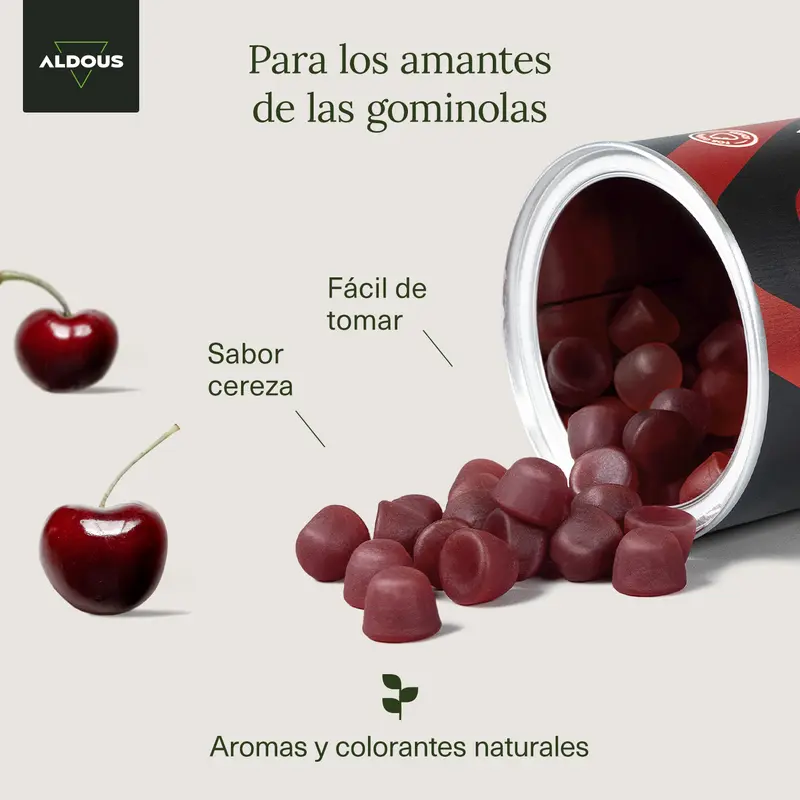 • 🌱 PARA LOS AMANTES DE LAS GOMINOLAS – Nuestro suplemento vitaminico masticable en gominolas es una alternativa a las pastillas o los productos en polvo. Las gummies de Aldous son veganas, no testadas en animales, sin gluten, sin lactosa, sin gelatina animal y libres de OMG. También sin aromas, colorantes ni edulcorantes artificiales. Tienen sabor natural a cereza y un bajo contenido en azúcar. Además, con tan sólo 1 gominola antes de dormir obtendrás la dosis diaria durante 4 meses.